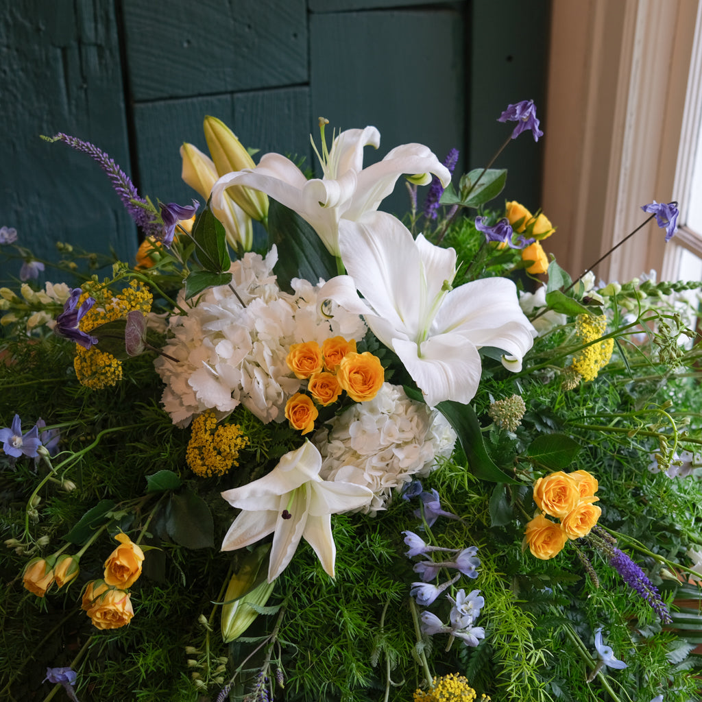 For this collection we have photographed a sample of our casket spray and urn designs; however, we are always glad to accommodate custom requests