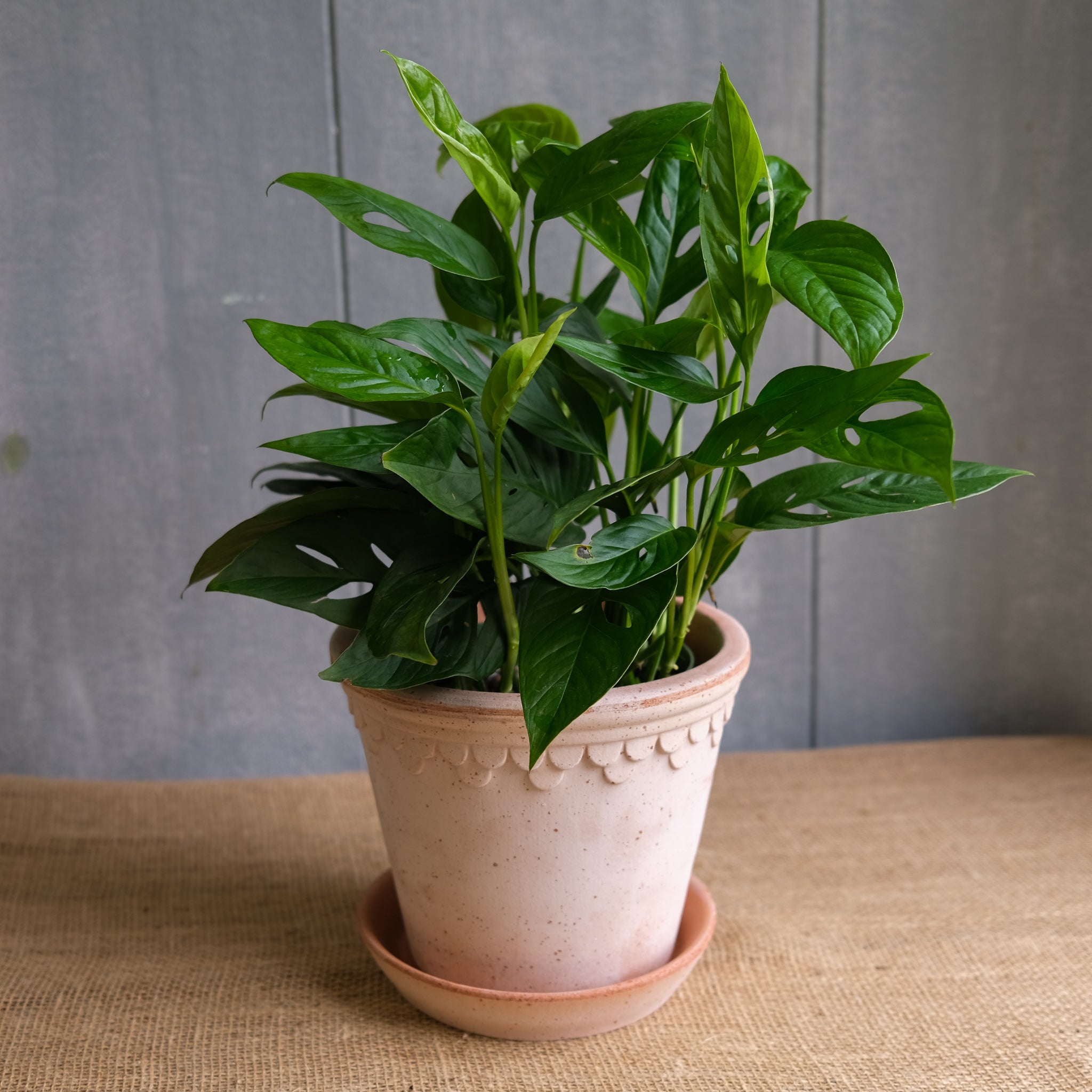 This plant's unusual foliage is full of naturally-occurring holes--the source of its common name "Swiss Cheese Vine".