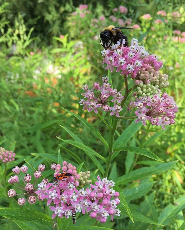 Large (4 to 5 feet tall, 2 to 3 foot spread) perennial that thrives in full sun and moist soils. Produces pale pink blooms in late summer. Blooms are attractive to butterflies, and foliage is an important food source for Monarch caterpillars.