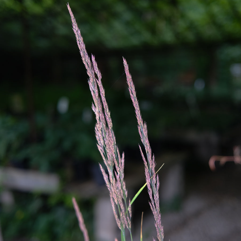 Feather reed grass that produces stalks of purplish-pink blooms in summer. Foliage can grow to a height of up to 5 feet with a spread of up to 2.5 feet. Prefers full sun and consistently moist soils.