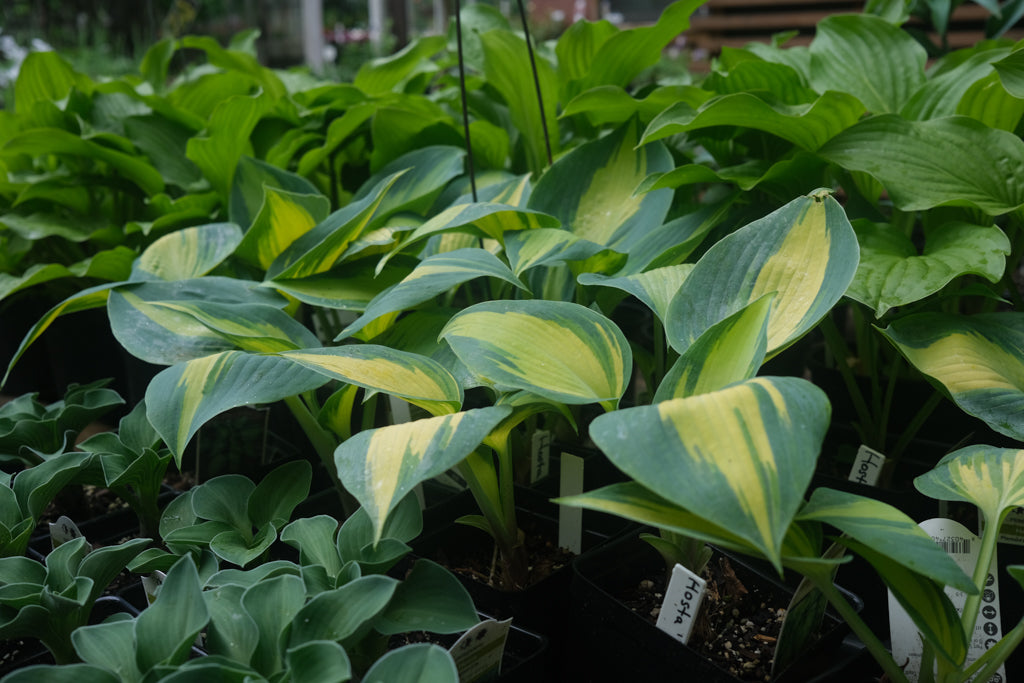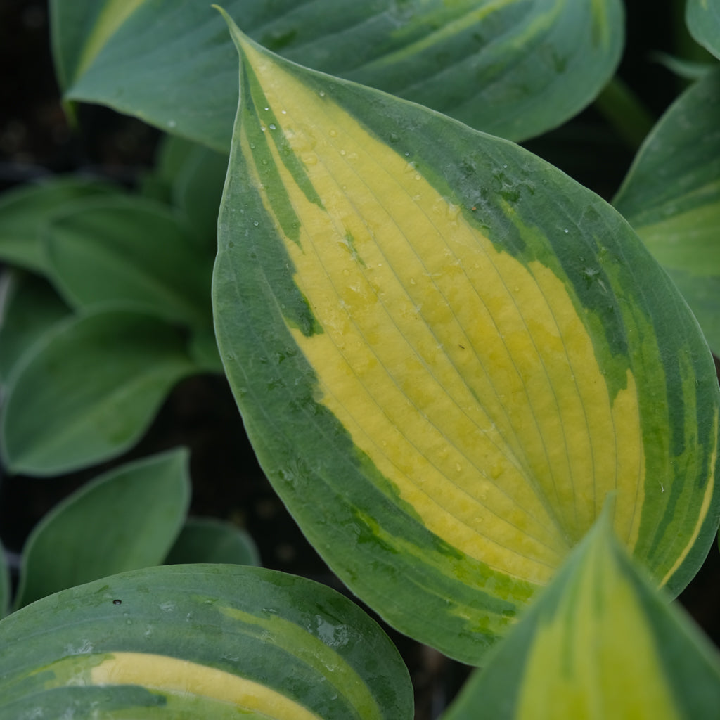 Much like the appearance of an avocado, this perennial features huge, glossy, apple green leaves with a darker green outer edge. It will bloom with a fragrant lavender flower in late summer. Although it prefers a shady environment, it can withstand some sun and enjoys moist soil.