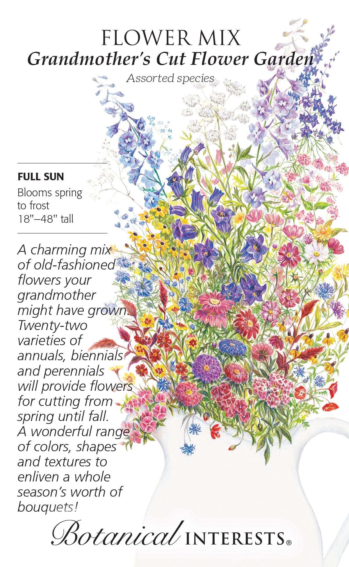 This mix will evoke images of the simpler, less hurried time in which our grandmothers lived. An old-fashioned cutting garden was often no more than a corner of the vegetable garden where a few flower seeds were tossed. Their lovely, cheerful blossoms were a bonus after the hard work of sowing, watering, weeding, and harvesting.
