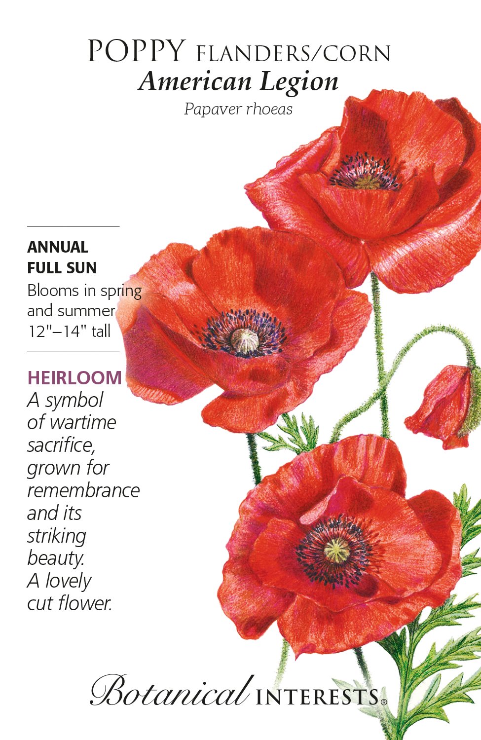 John McCrae, a Canadian physician and soldier who served in World War I, immortalized the Flanders poppy, also known as corn poppy. His poem, "In Flanders Fields" spoke of these red poppies as reminders of those who had lost their lives in war. Scatter them in early spring or fall for your own personal memorial, or simply enjoy them for their glorious beauty.
