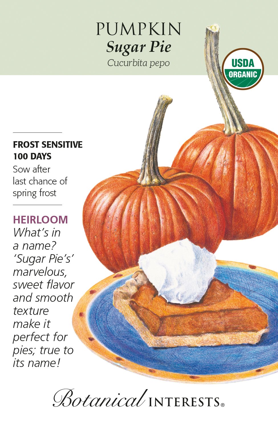Since 1863, 'Sugar Pie' has been the standard for making terrific pies, soups, muffins, and casseroles. Small 6" fruits are also good for carving table décor-size jack o'lanterns. Stores for months. Also called 'New England Pie' pumpkin.