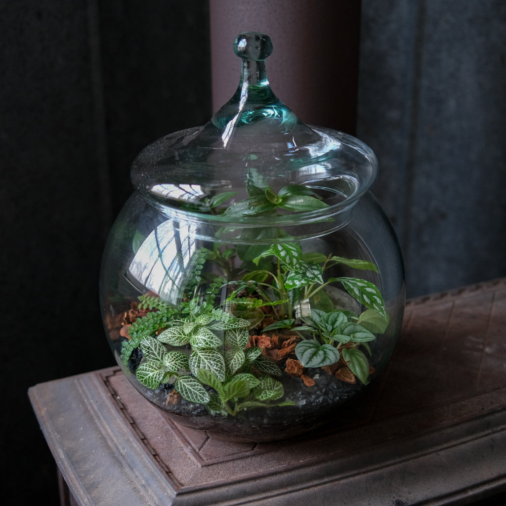 Succulent and cactus gardens, woodland terrariums, and tropical house plants make unique botanical gifts.