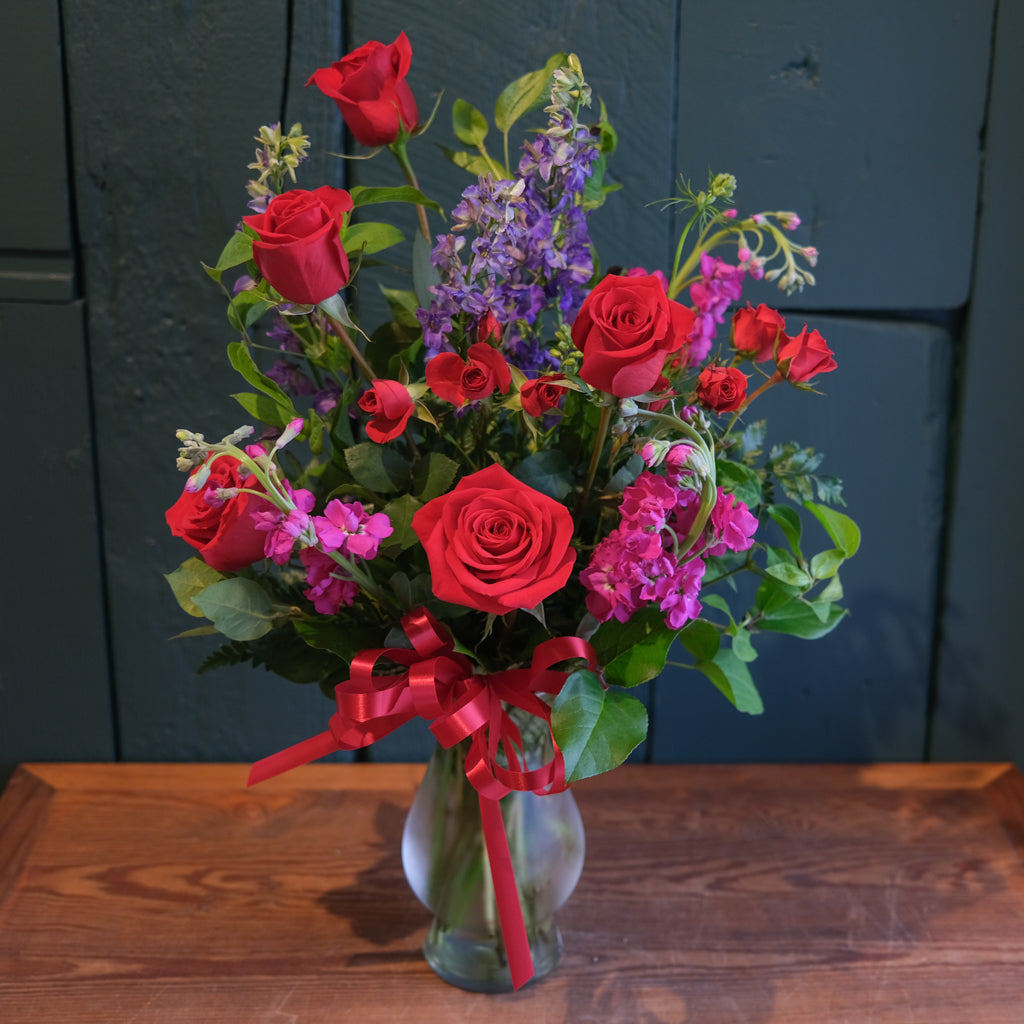 All of our flower arrangements in our Valentine's Collection are available for local Lexington, KY delivery or local pick-up in our shop located near downtown Lexington, KY.
