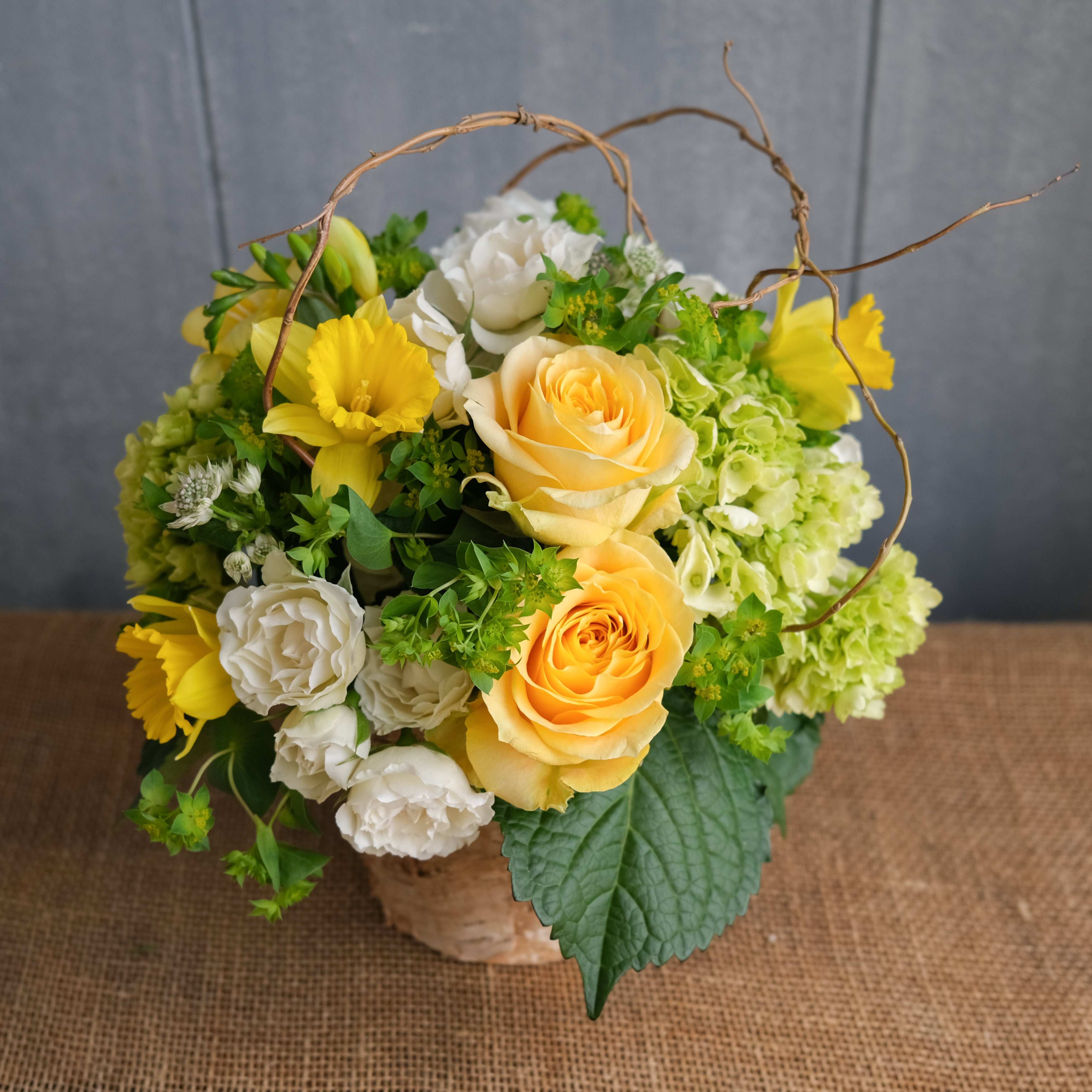 Our winter flower designs feature evergreen foliage and greenhouse grown bulb flowers including tulips, anemones, and amaryllis.