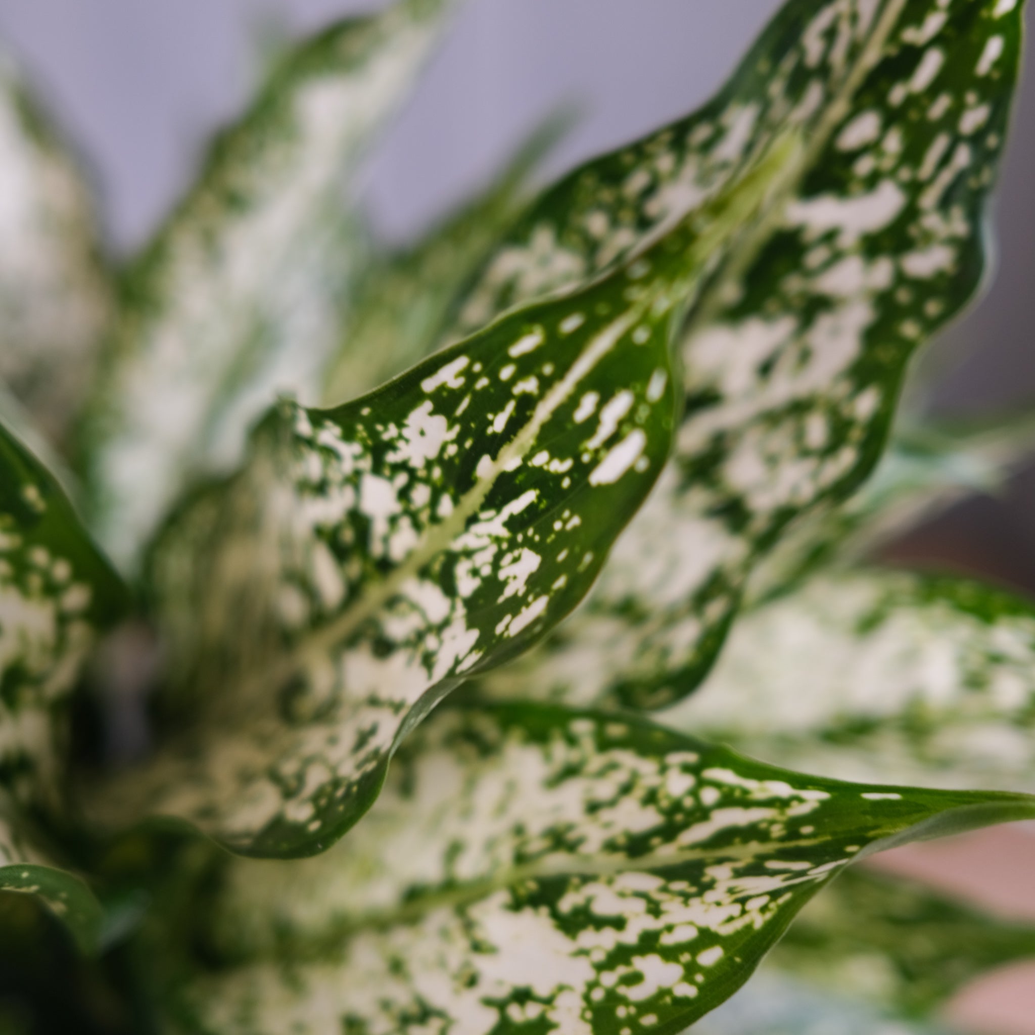 With its vibrantly patterned leaves, Aglaonema 'Spring Snow' will add color and texture to virtually any space. This foliage plant will thrive in a variety of lighting and soil conditions, so it is an excellent choice for those that have dim lighting or who may forget to water regularly.