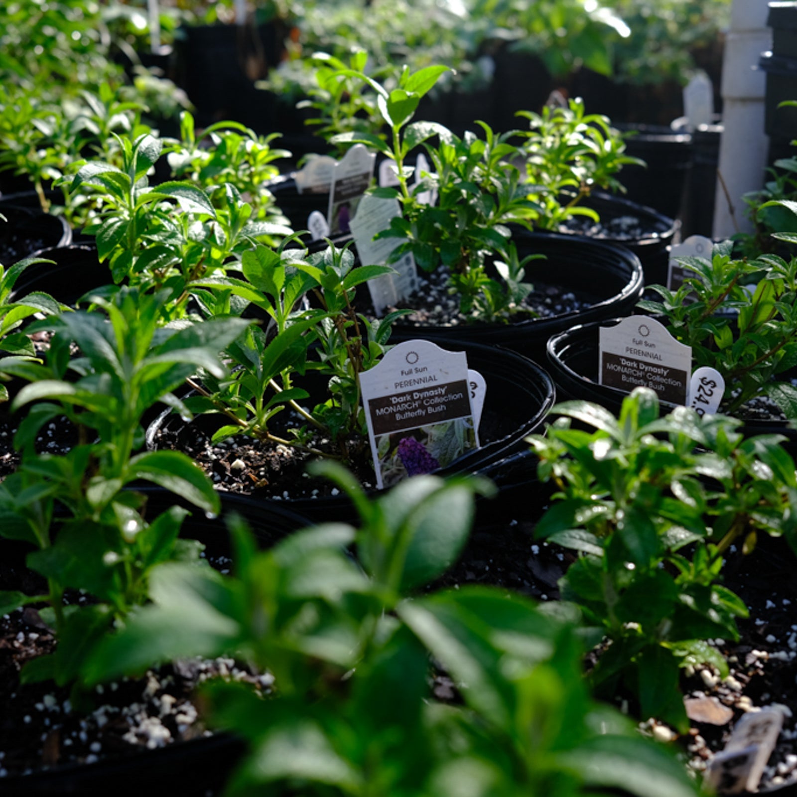 Recognized by its compact size and deep purple flower spikes, this Dwarf Butterfly bush makes a great addition to any sun-filled garden. This small perennial shrub reaches a mature height and spread of 3-4 feet, thriving in full sun and well-drained soil. 'Dark Dynasty' is very attractive to pollinators and makes an excellent cut flower for floral arrangements and wildflower bouquets.