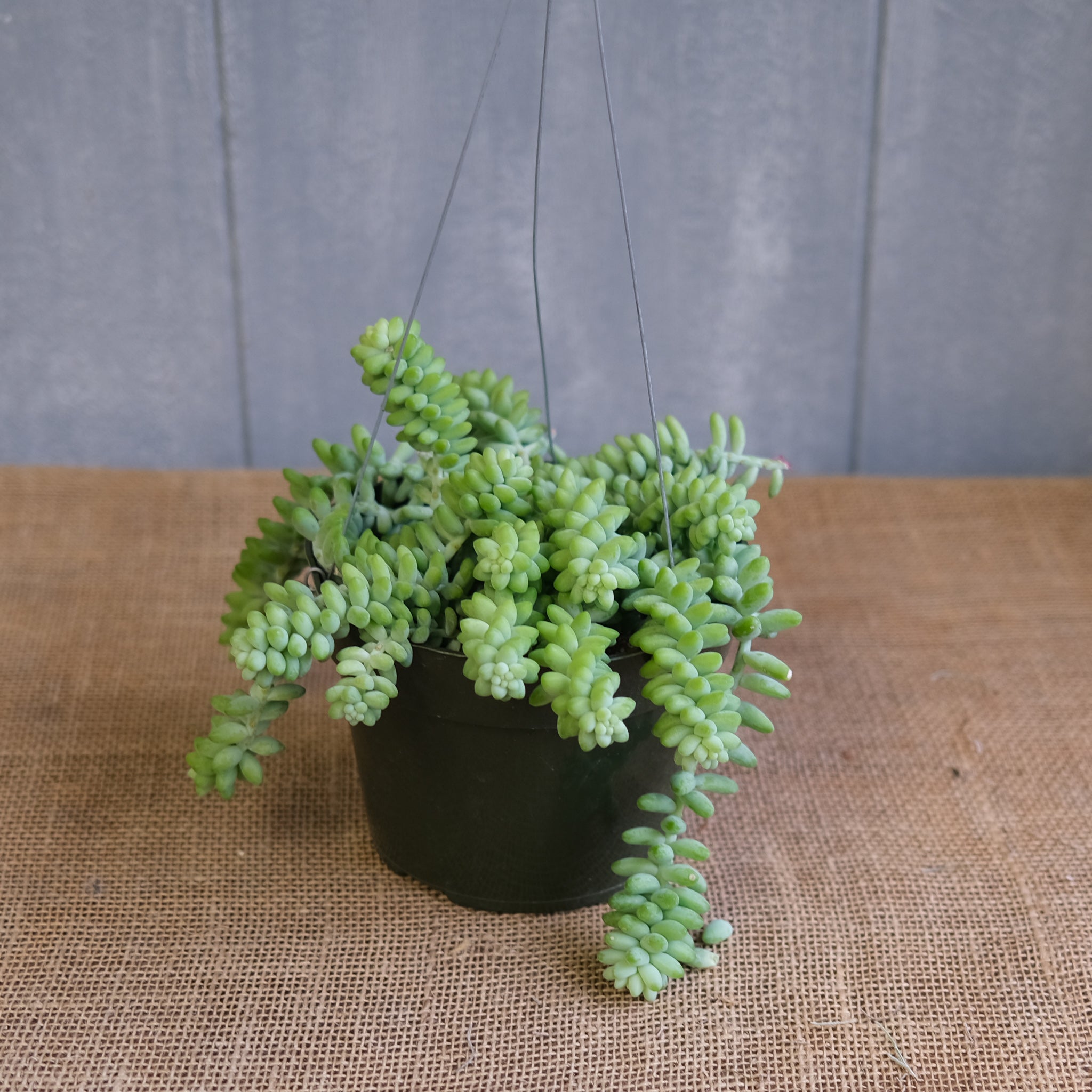 A trailing succulent sure to add interest and texture to any space. Hang it with the provided wire and hook or let its tendrils wind their way over counters and shelves.