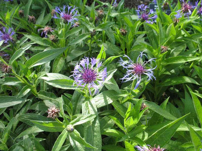 A clump-forming perennial featuring fringed, blue cornflowers amidst gray-green foliage in late spring. Grows 1 to 2 feet tall and 1 to 2 feet wide. Prefers full sun and dry to medium, well-drained soil.