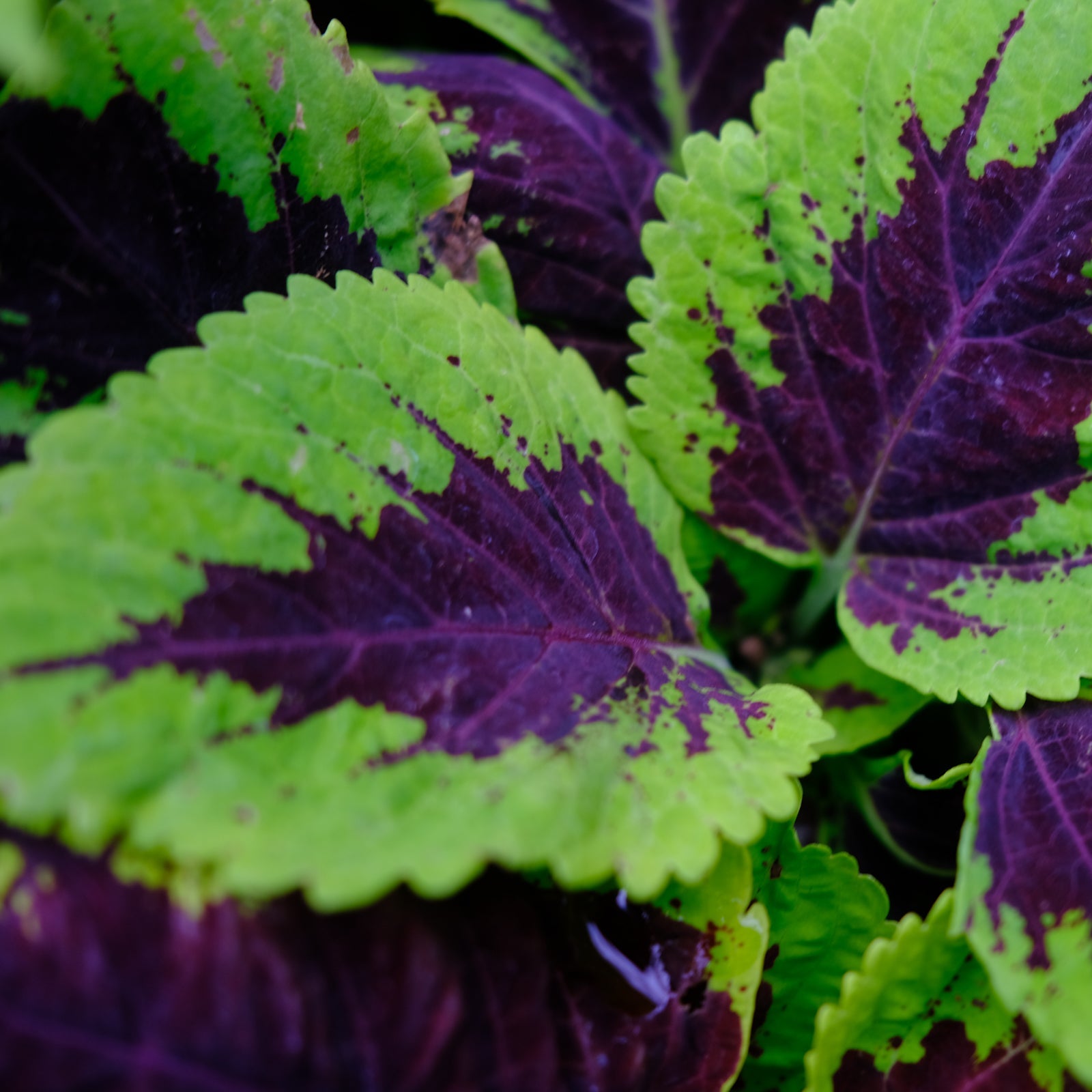 Coleus 'Kong Rose' is an eye-catching annual that combines a deep burgundy to dark violet center with a lime green border. Reaching a mature height and spread of 18-24 inches, this coleus thrives in partial to full shade and well-drained soil. 'Kong Rose' is a worthy specimen for adding color and interest to any shaded garden bed, border, or container planting.