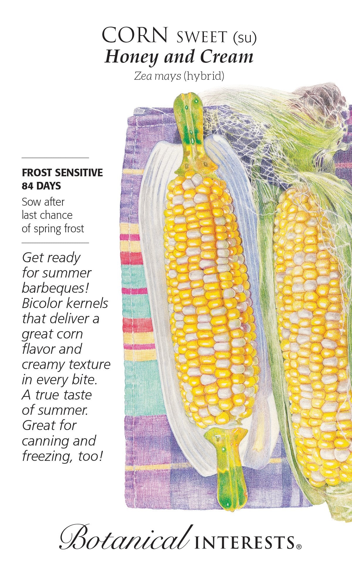Corn on the cob is one of the best, and most highly anticipated summer treats. Homegrown corn has amazing flavor and tenderness, so much better than what you find in the grocery stores. A perfect blend of luscious, white, and yellow kernels just bursting with flavor, this corn will be a hit at your next barbeque. Each 7" bicolor ear has about 12 rows of sweet, creamy kernels. 'Honey and Cream' cans and freezes well, too—savor summer all year! Disease resistant.