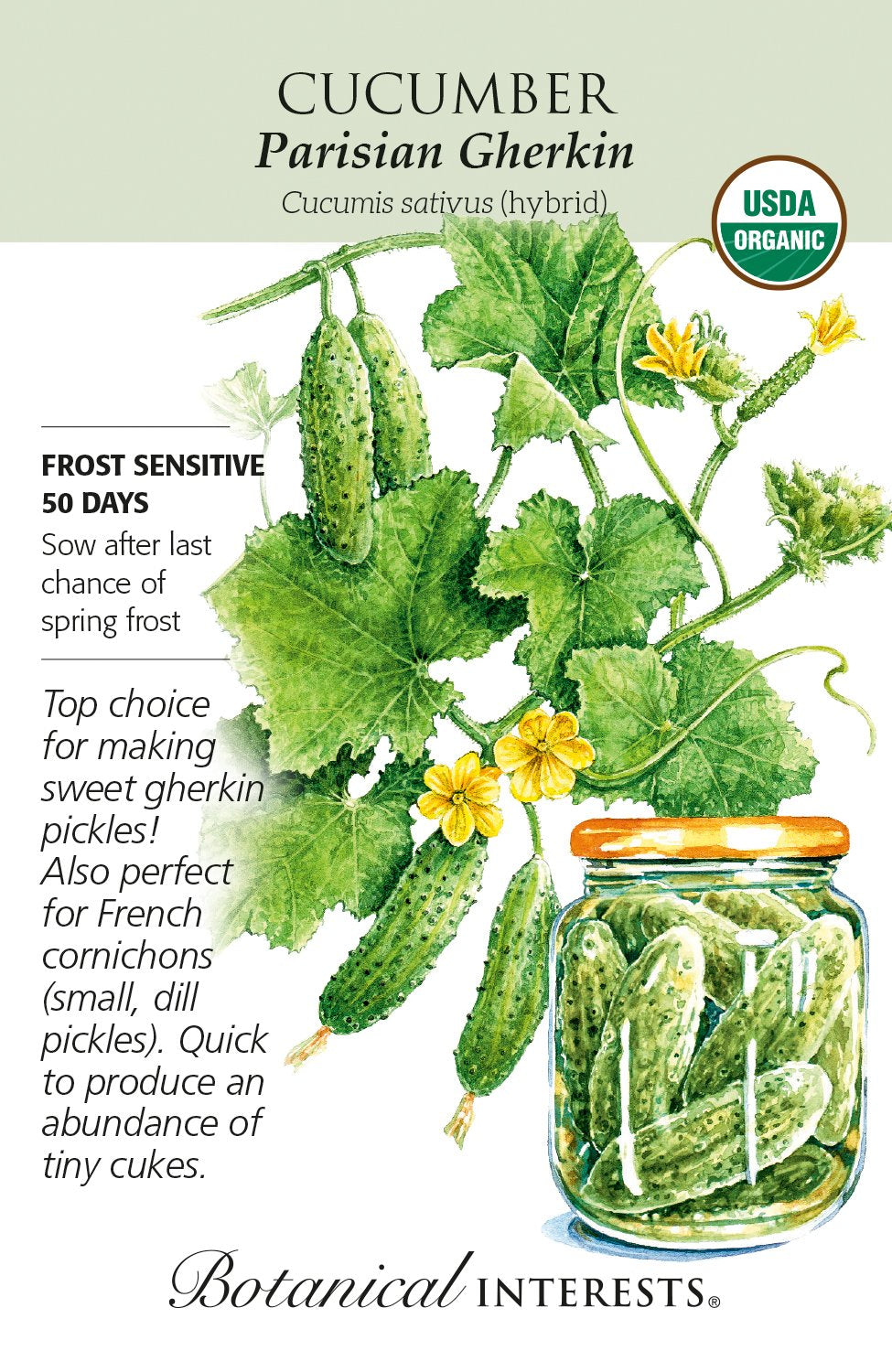 Gherkins are tiny cucumbers used for pickles, and these are the best! Use as small as 1 ½" long for excellent sweet pickles, or for French cornichons ("little horns"). Slice for salads at 3"–4" long. Plants are semi-vining at 24" long and ideal for small garden spaces and containers. Disease resistant. A 2015 All-America Selections winner.