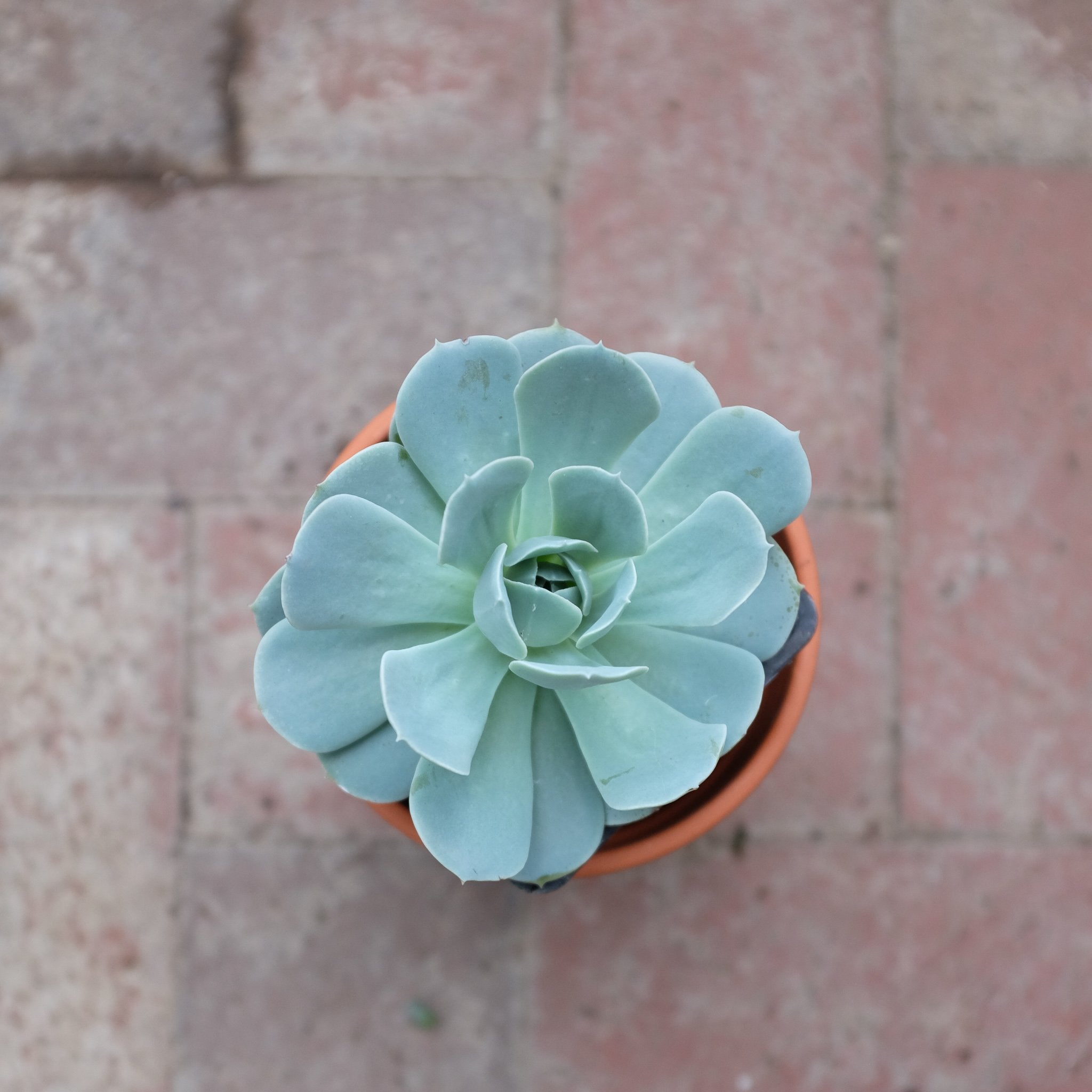 A low, blue-green rosette of water-storing foliage, this succulent loves bright light and soil with excellent drainage.