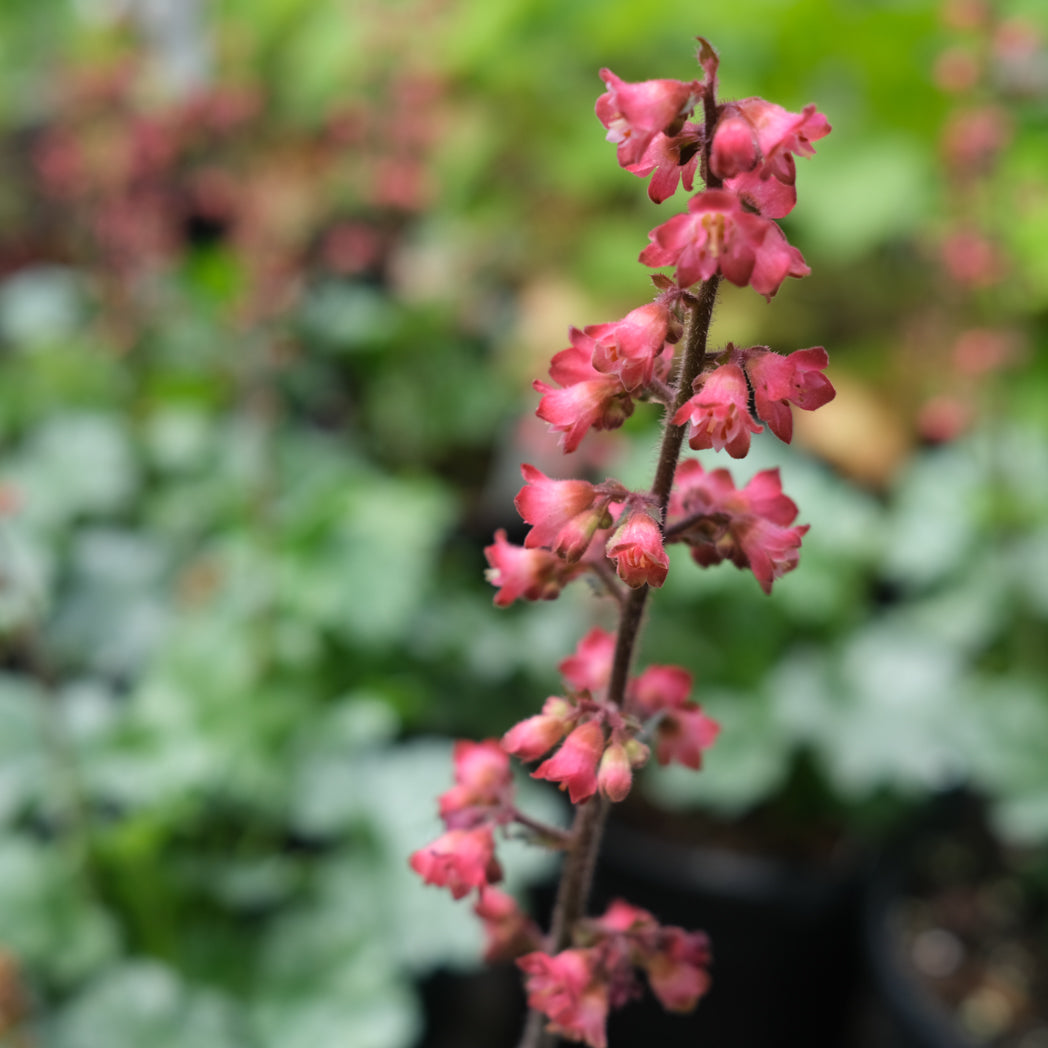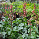 Low, clump-forming perennial featuring bright green leaves with delicate red flower spikes in summer. Foliage mound can reach a height of 8"-10" with a spread of up to 1.5 feet. Prefers full to part sun in rich, moist, well-drained soil.
