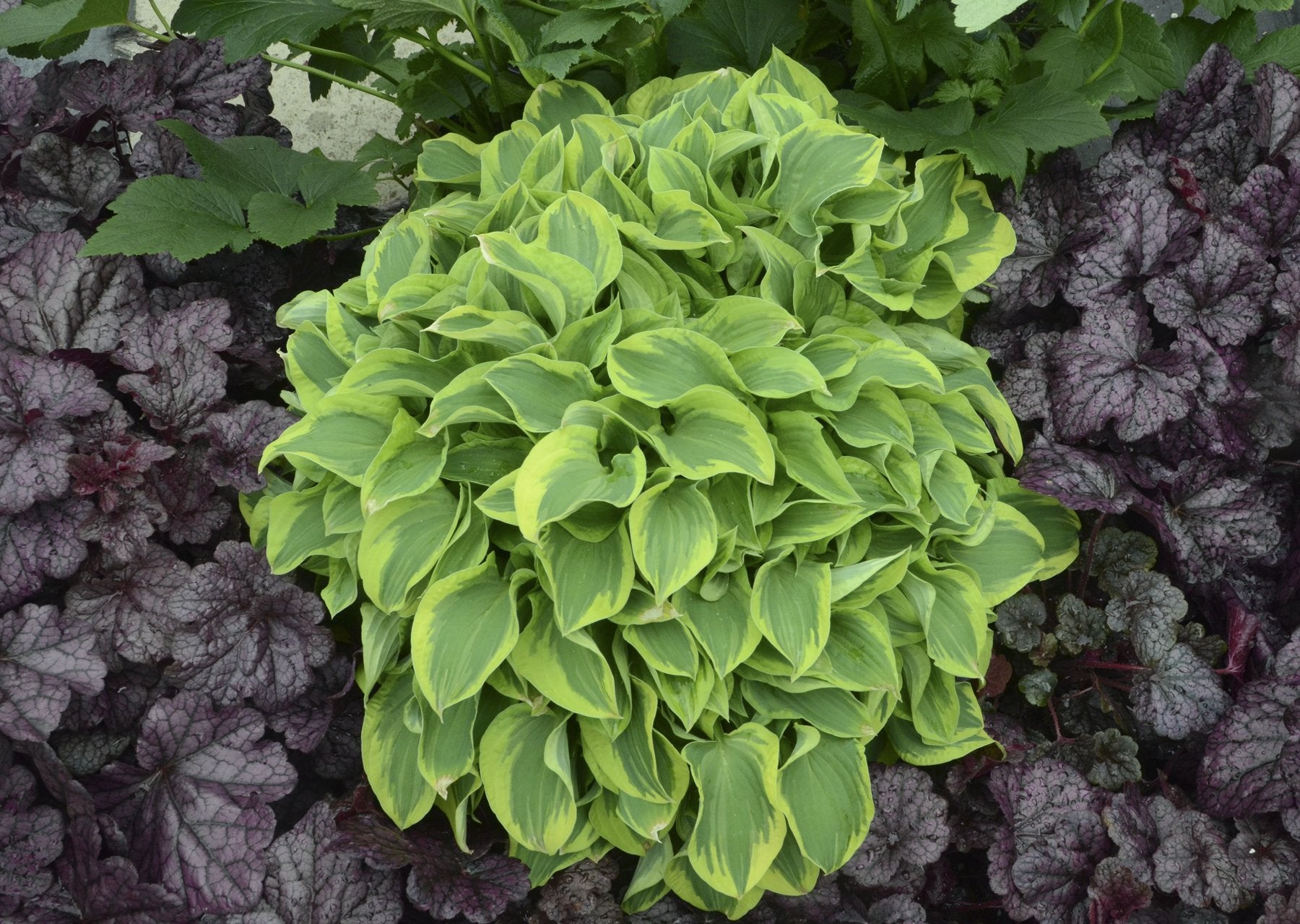 Small hosta featuring bright green leaves with creamy yellowish-white margins; lavender bloom spikes appear in midsummer. Grows in a clump up to 1.5 feet tall with a spread of up to 2 feet. Prefers part to full shade in rich, moist soils. Pollinator friendly.