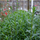 A low, hedge-like perennial herb with showy, blue-purple flowers and fragrant, dark green leaves. Leaves and young shoot tips are edible and are often used to flavor soups, stews, and salads. Oils are sometimes used in potpourris and perfumes. Best grown in full sun to part shade in well-drained soil, and grows 1-2 feet tall and 1-1.5 feet wide. Attracts pollinators and resists both deer and drought.