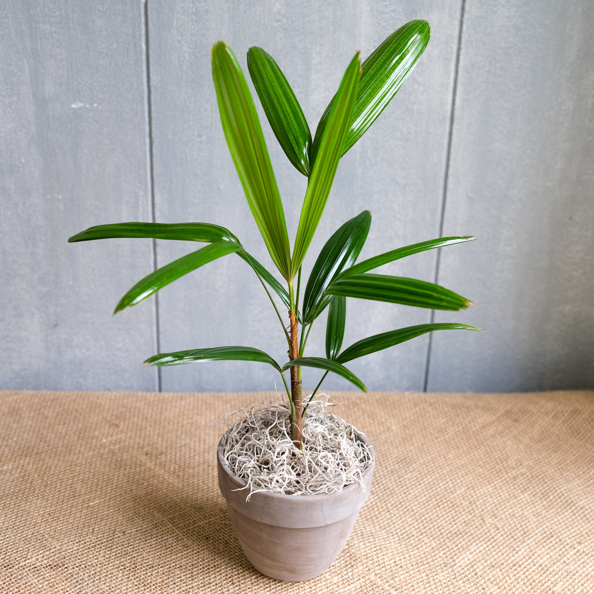 With it's fun ribbed texture, split leaves, and unique saw-toothed edges, this bright green palm is sure to liven up any space. The Lady Palm's low light and humidity requirements make it an excellent addition to any office or apartment.