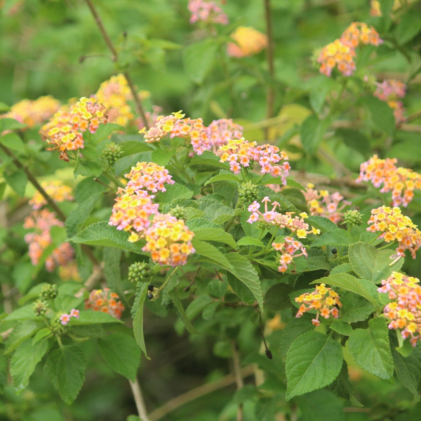 This heat tolerant annual has delightful white, pink, and yellow blooms that last throughout the summer season. Lantana camara 'Bandolero Pink' is a more compact cultivar of Lantana, with a mature height and spread of 18-24 inches. This annual thrives in full sun and well-drained soil and is considered drought tolerant once established. Ideal for garden beds, borders, and containers and an attractive plant for pollinators.