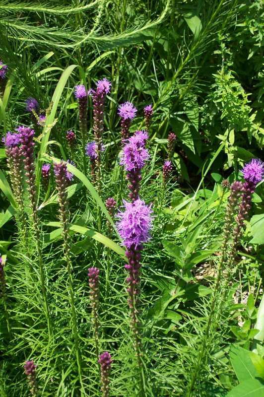Tall, upright, clump-forming perennial with showy purple bloom spikes that appear in mid- summer. Foliage mound typically reaches 12" tall with bloom spikes reaching 2'-4'. Prefers full sun and moist, fertile soils. Tolerates moisture better than most other varieties of liatris. Easy to grow; pollinator friendly.