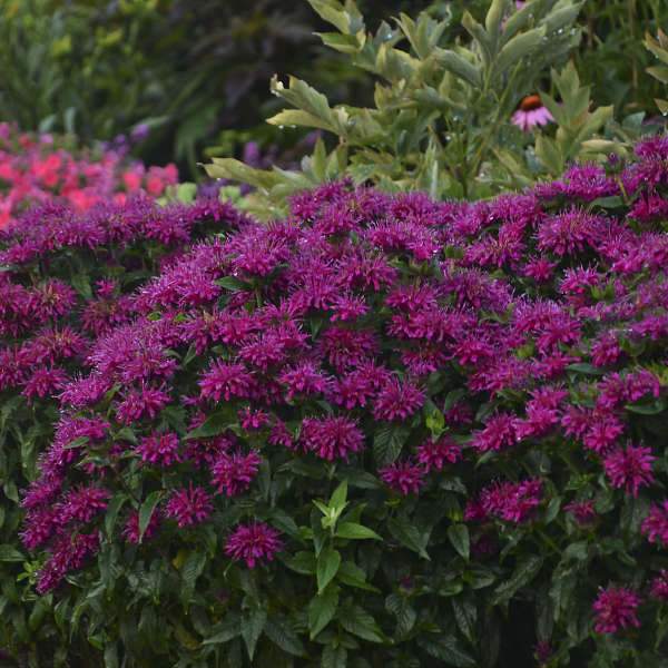 A mildew-resistant cultivar of the pollinator-friendly monarda. Forms clumps 1.5'-2' tall with a spread of 1.5'-2' and will spread through rhizomes over time. Produces purple blooms from mid- to late summer. Leaves are lightly fragrant. Tolerates full sun to part shade in a variety of soil types.