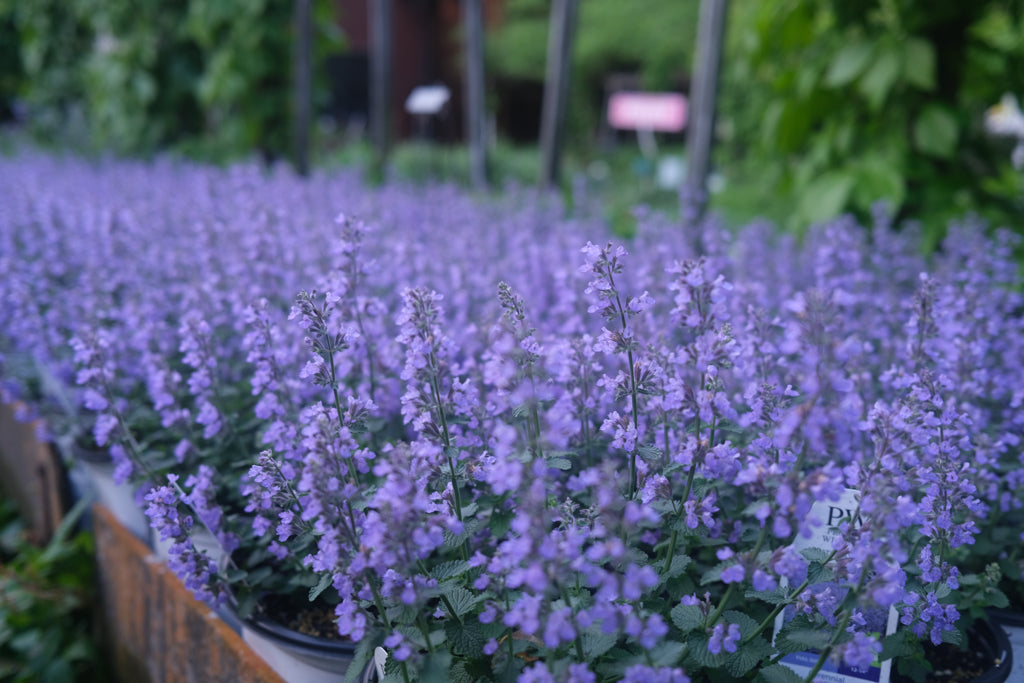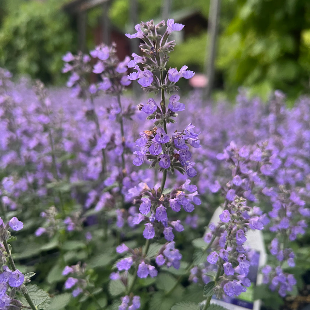 Compact variety of catmint whose lavender-blue flowers appear a bit earlier than some other varieties of catmint. Plants form clumps up to 14" tall with a spread of up to 20" and prefer full sun in well-drained soil. Drought tolerant and pollinator friendly. 'Cats Pajamas' features blooms the full length of the upright stems and will rebloom if the stems are cut back after flowering.