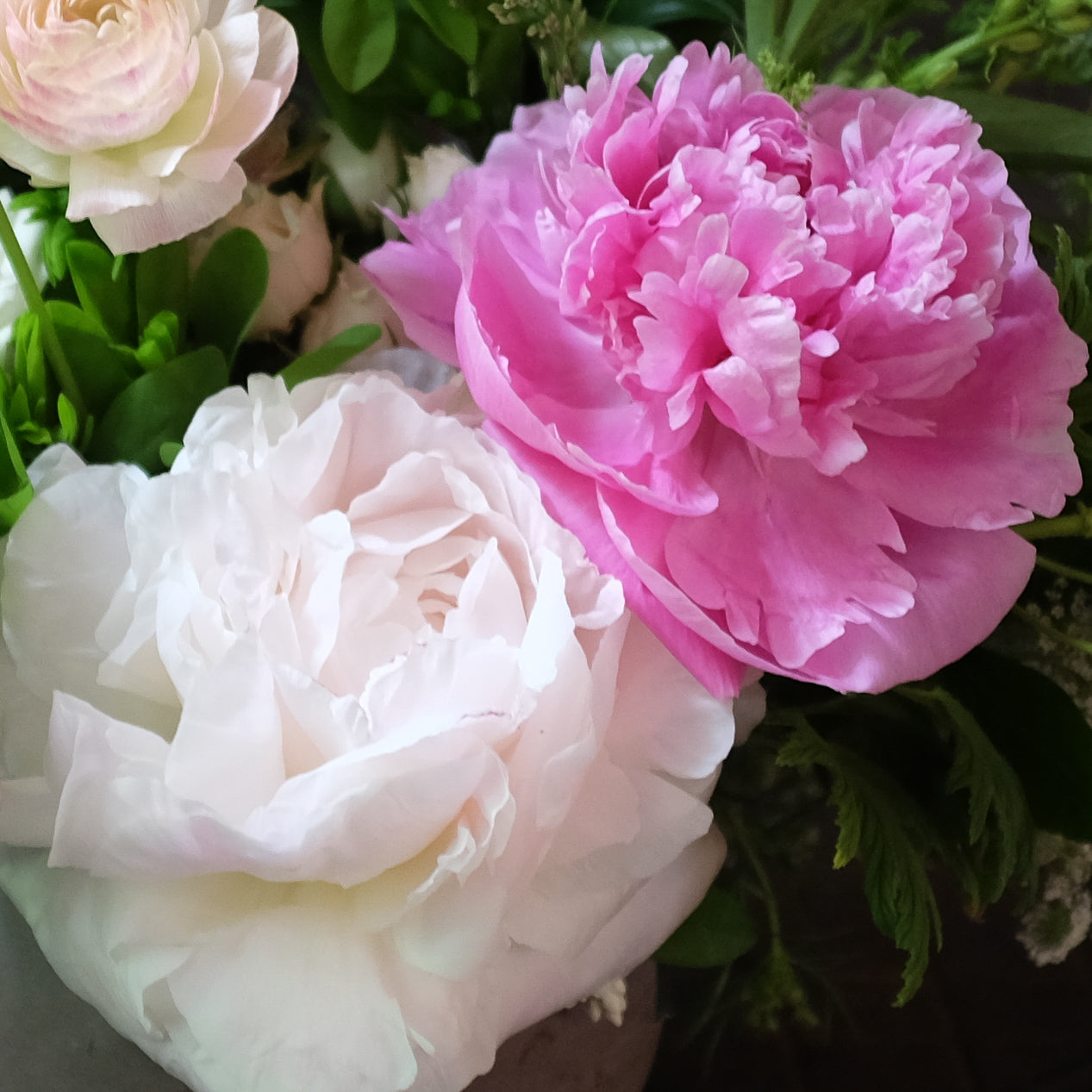 With the peony as a primary element, these bouquets are seasonal compositions of various garden flowers and foliage, designers choice.