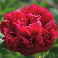 A late blooming peony with rich red, large double flowers. Petals are large and broad on the exterior, with longer and narrower ones towards the center. Excellent cut flowers for arrangements. Prefers full sun in medium moisture, well-drained soil.