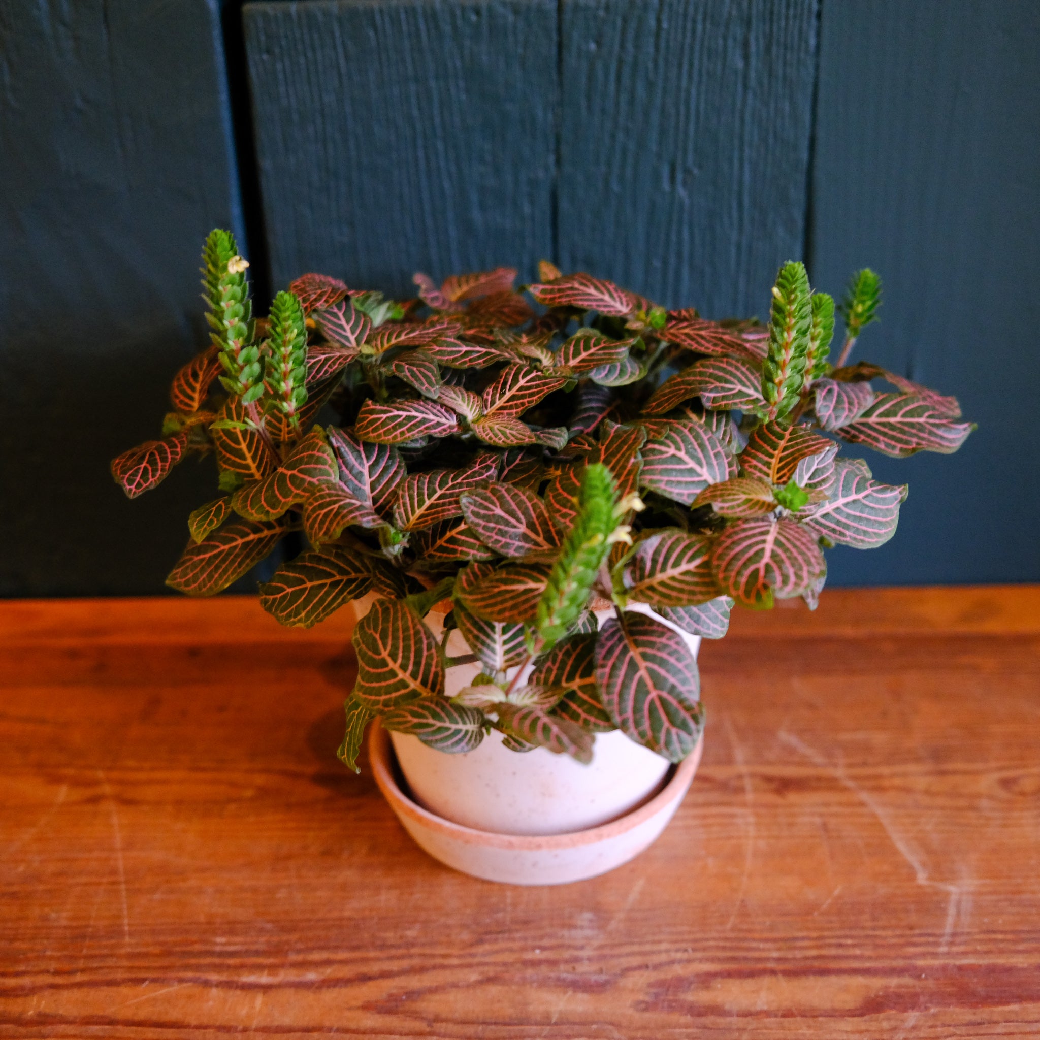 With striking pink veined leaves, Pink Nerve Plant is perfect for adding color and texture to indoor spaces. It prefers bright, indirect light and moderate watering.