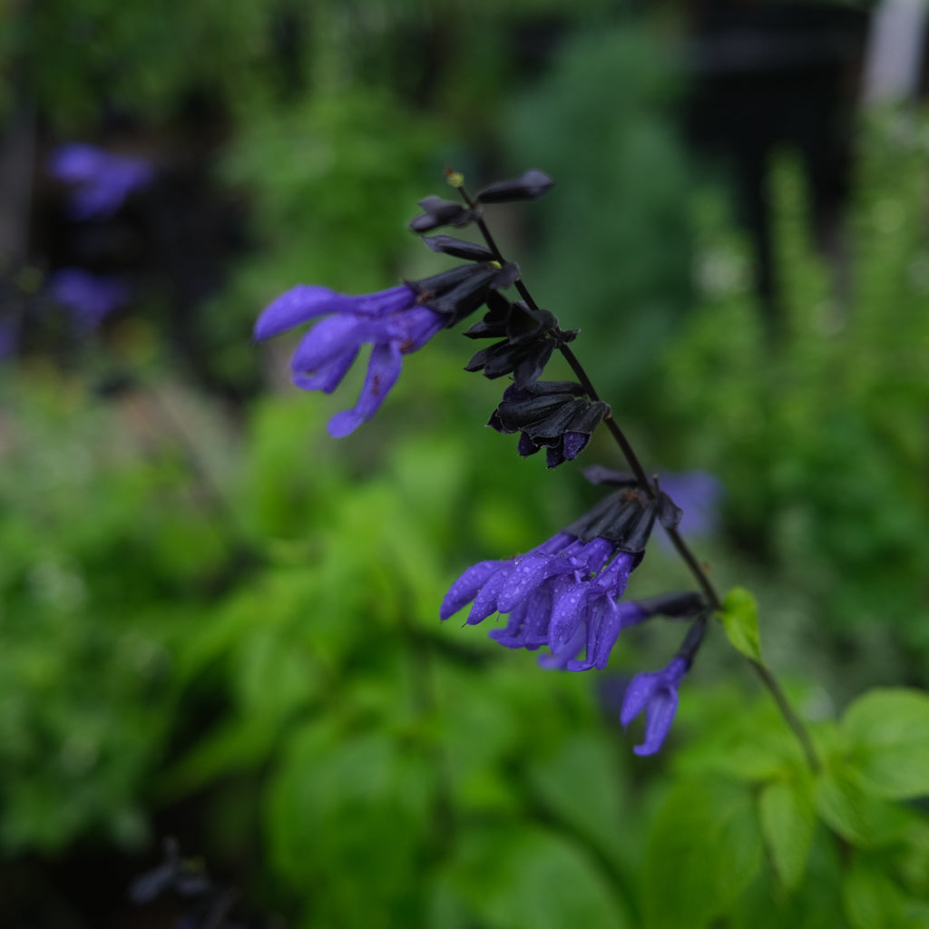 Salvia 'Black and Blue' is a striking tender perennial known for its vivid cobalt-blue flowers and dramatic black sepals that bloom in lat spring. Reaching a height and spread of 2-3 feet, this heat-tolerant salvia thrives in full sun to part shade and prefers well-drained soil. It is ideal for garden beds, planted borders, and containers, attracting pollinators and adding vibrant color to the landscape.