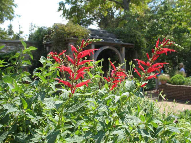 A shrubby, tender perennial sage commonly grown as an annual for its ornamental value and pineapple aroma. Features ovate, soft, hairy leaves; two-lipped bright scarlet red flowers bloom in loose whorls on terminal spikes from late summer into fall. The flowers are attractive to hummingbirds and butterflies. Similar in growth and maintenance requirements to garden sage (Salvia officinalis). May be overwintered indoors in a bright but cool site. Deer-tolerant. 3-4'H x 2-3'W. USDA Zones 8-10.