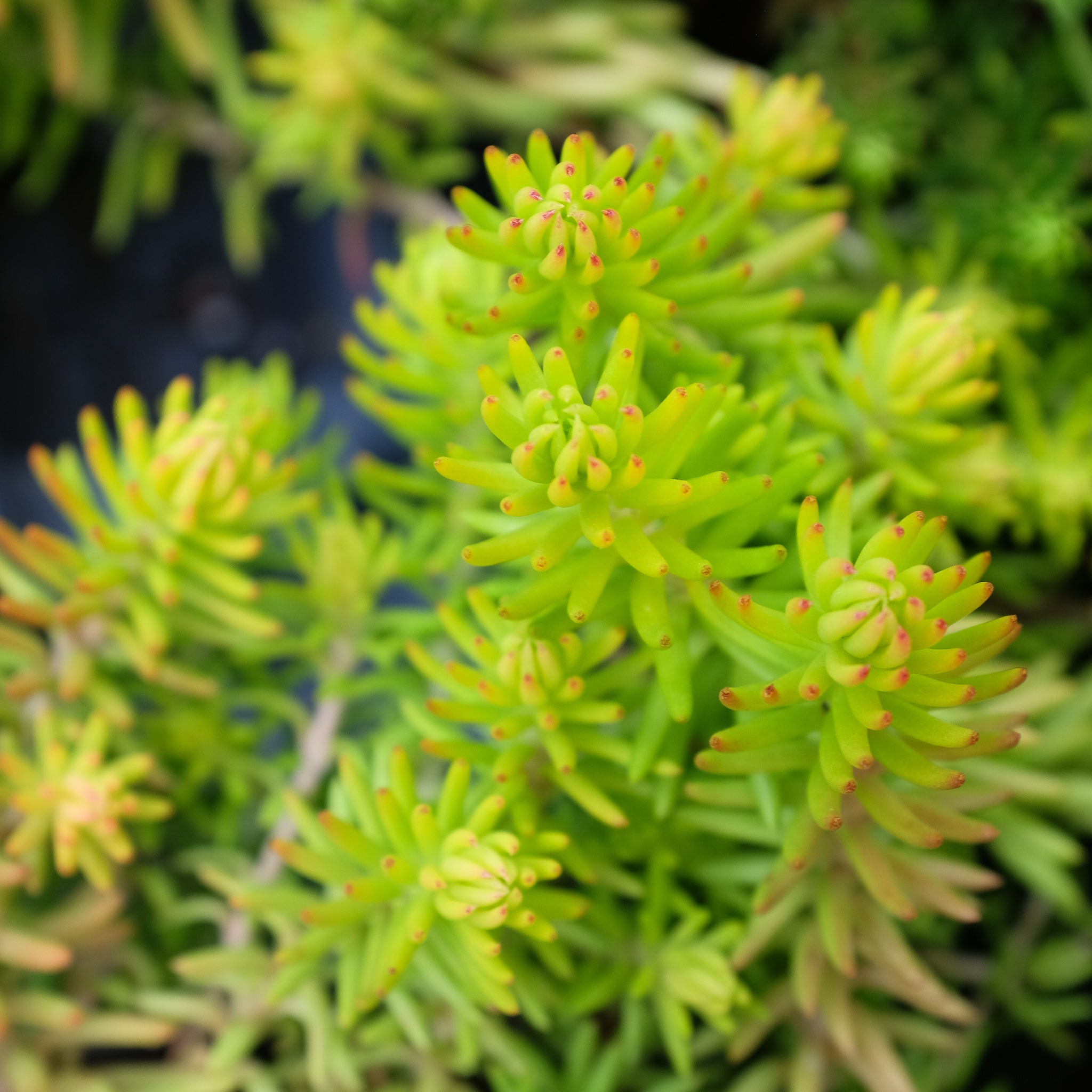 Lime green variety of low-growing sedum that makes an excellent ground cover in sunny areas. Mat of foliage grows to a height of 3"-6" with a spread of 1'-2' and prefers full sun exposure in soils with good drainage. Small yellow flowers will appear at the ends of the stems in the summer. Does well in rock gardens and is very drought tolerant.