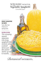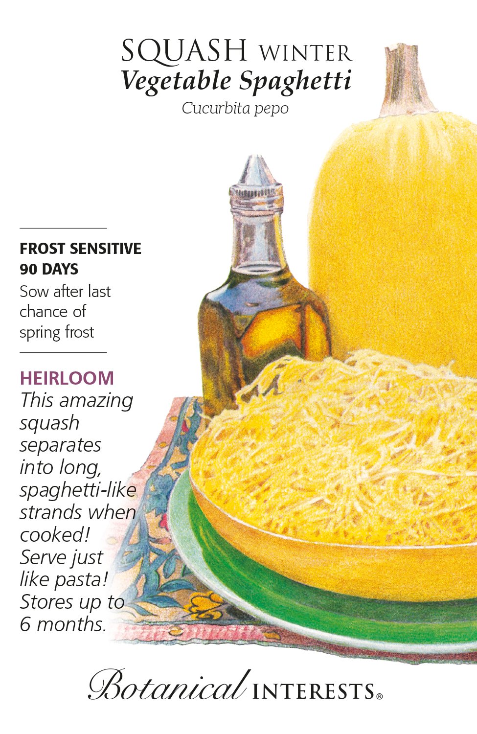 Also called gold string melon, spaghetti squash is unique among winter squashes; when cooked, the flesh falls away from the shell in strands like spaghetti, and retains a tender, yet al dente, texture. Savory flavor that is delicious, and low calorie, with a simple bit of butter and salt. Each plant can yield 5 to 7 squash.