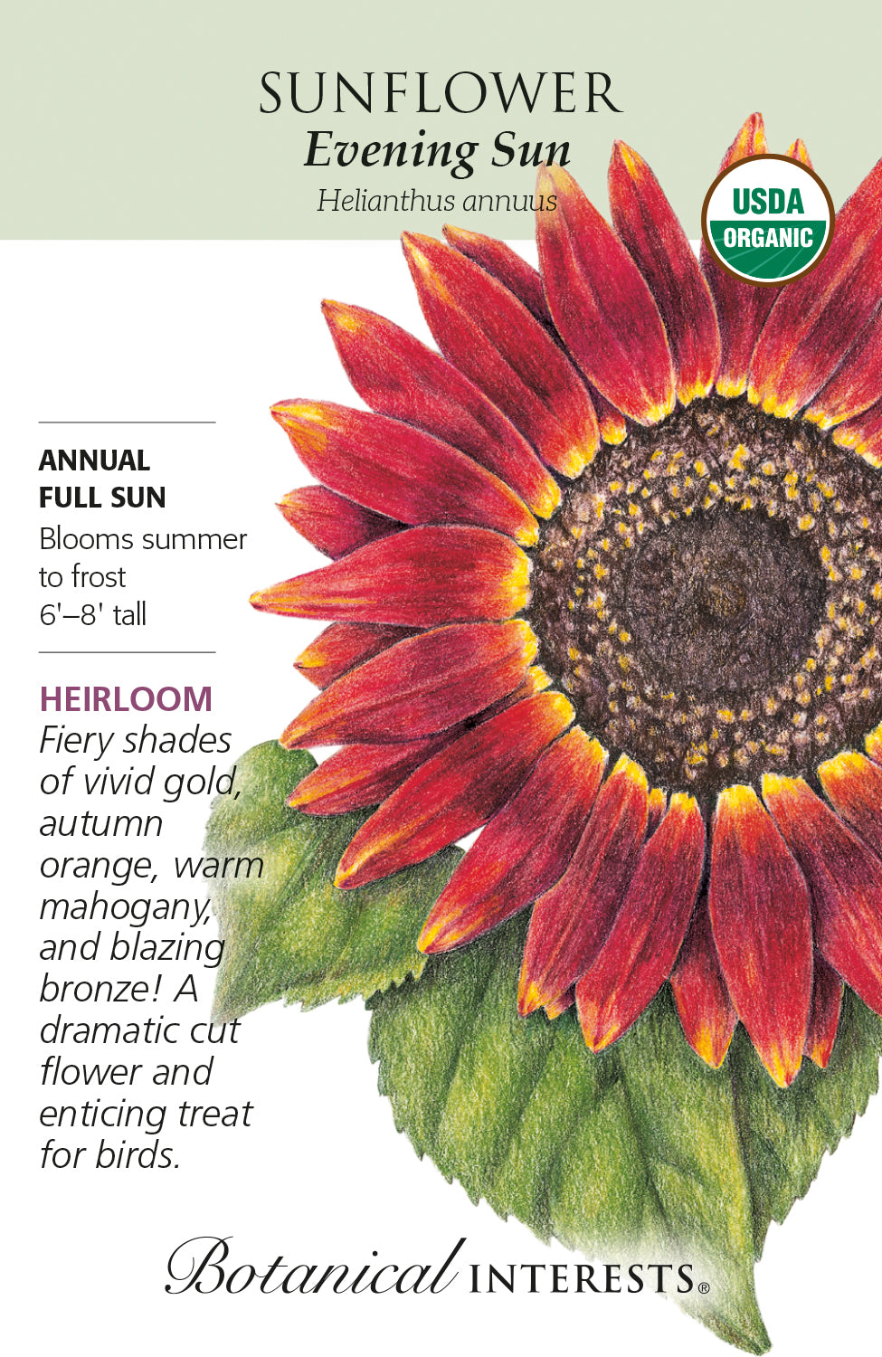 Gorgeous 4"–6" sunset-hued flowers with dark centers bloom in abundance over a long bloom period to keep your garden alight with color and pollinators, and your flower vases full for many weeks. Several rich tones all on one plant! Sunflowers are edible, with a bittersweet flavor. The petals add a pretty pop of color ion salads and desserts. The young, sunflower buds are edible, with a flavor similar to artichoke hearts. They can be grilled, marinated, or sauteed for an unusual appetizer or side dish. Multi-branching habit makes for an excellent annual screen. Sunflowers are one of the easiest flowering plants to grow and drought tolerant.