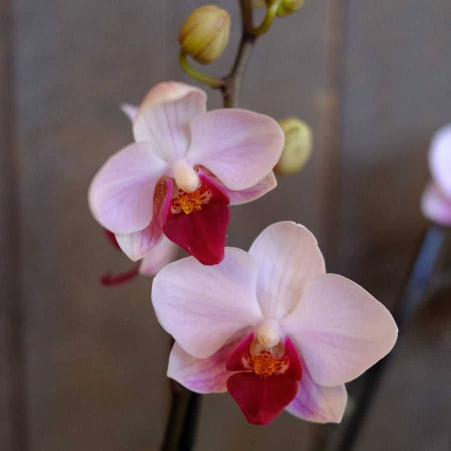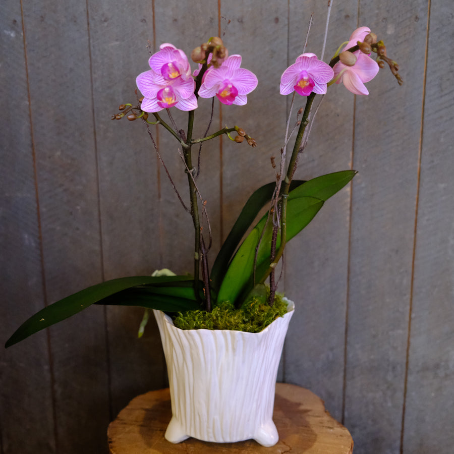 This miniature phalaenopsis orchid has double stems for even more blooms and is sure to add a pop of color on an office desk or in a home window. Each orchid has its own unique color pattern and comes in various shades of pink, fuscia, purple, and yellow.
