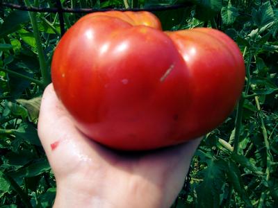 A cross between several large tomato varieties, Mortgage Lifter plants produce much fruit, resist disease, and often bear until frost. Fruits average 2.5lbs each and may grow as large as 4lbs.