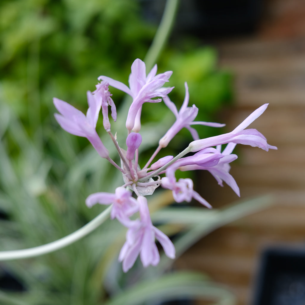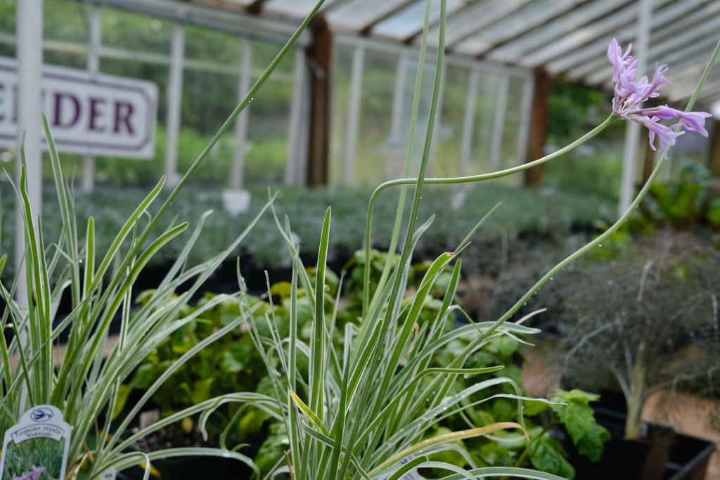 A tender perennial similar in use and appearance to Allium tuberosum (garlic chives), but with strap-shaped leaves and lilac-pink flowers. It is also considered somewhat less palatable. Blooms from July to September. Heat-tolerant, it does best in full sun with consistent moisture during the growing season. May be grown in containers and brought indoors for overwintering in a bright, cool area (40-50 degrees F) with minimal watering. 1-2'H x 0.75-1'W. USDA Zones 7-10.