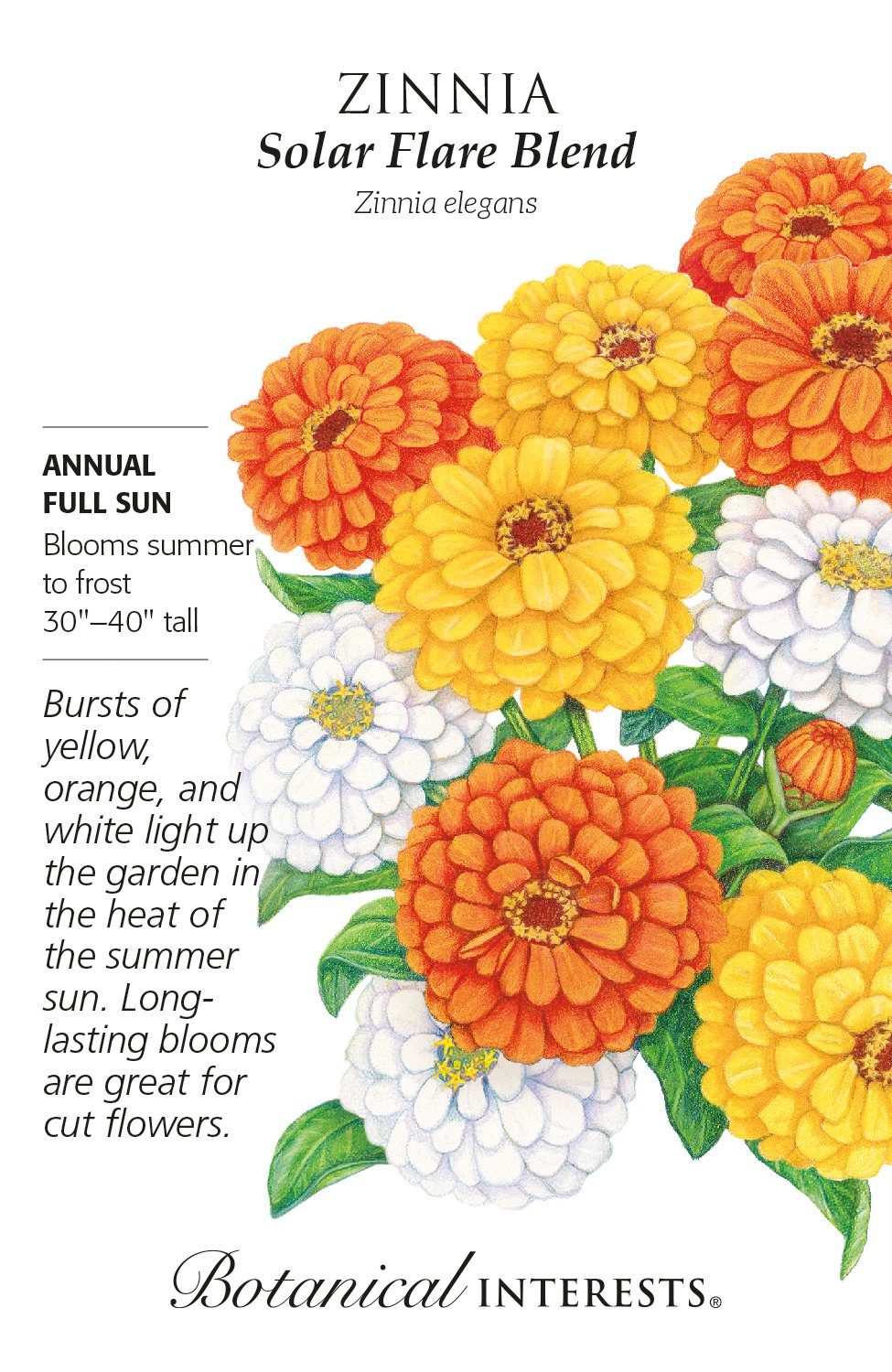 Your garden will erupt in color with our fiery combination of hot orange and sunny yellow flowers, set off against cool white blooms and lush green foliage. Zinnias are easy to grow, love the heat, and have long-lasting flowers. Dazzle your friends and neighbors by planting a tall border or large bed for masses of color. Big, 4"–5" flowers make beautiful, fresh bouquets that shine with the brilliance of the summer sun. Loved by many butterflies.